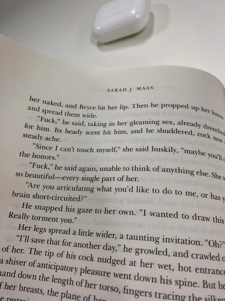 Well, one Google search later, and according to Marshall University, it was banned for sexually explicit content. If you Google the blurb, you’ll find that this book is a fantasy romance novel full of sex and gore (and a “non-graphic” rape scene, may I add) with most readers on Common Sense Media recommending a reading age of 17+.